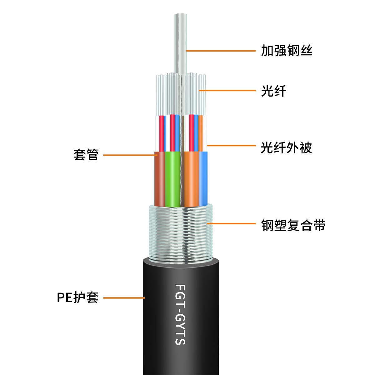 FGT 層絞式系列光(guāng)纜,也稱GYTS/GYTA光(guāng)纜,執行标準:IEC 60793YD/T 901ISO/IEC 11801ANSI/TIA-568.3-D,産品達到國(guó)内先進水平